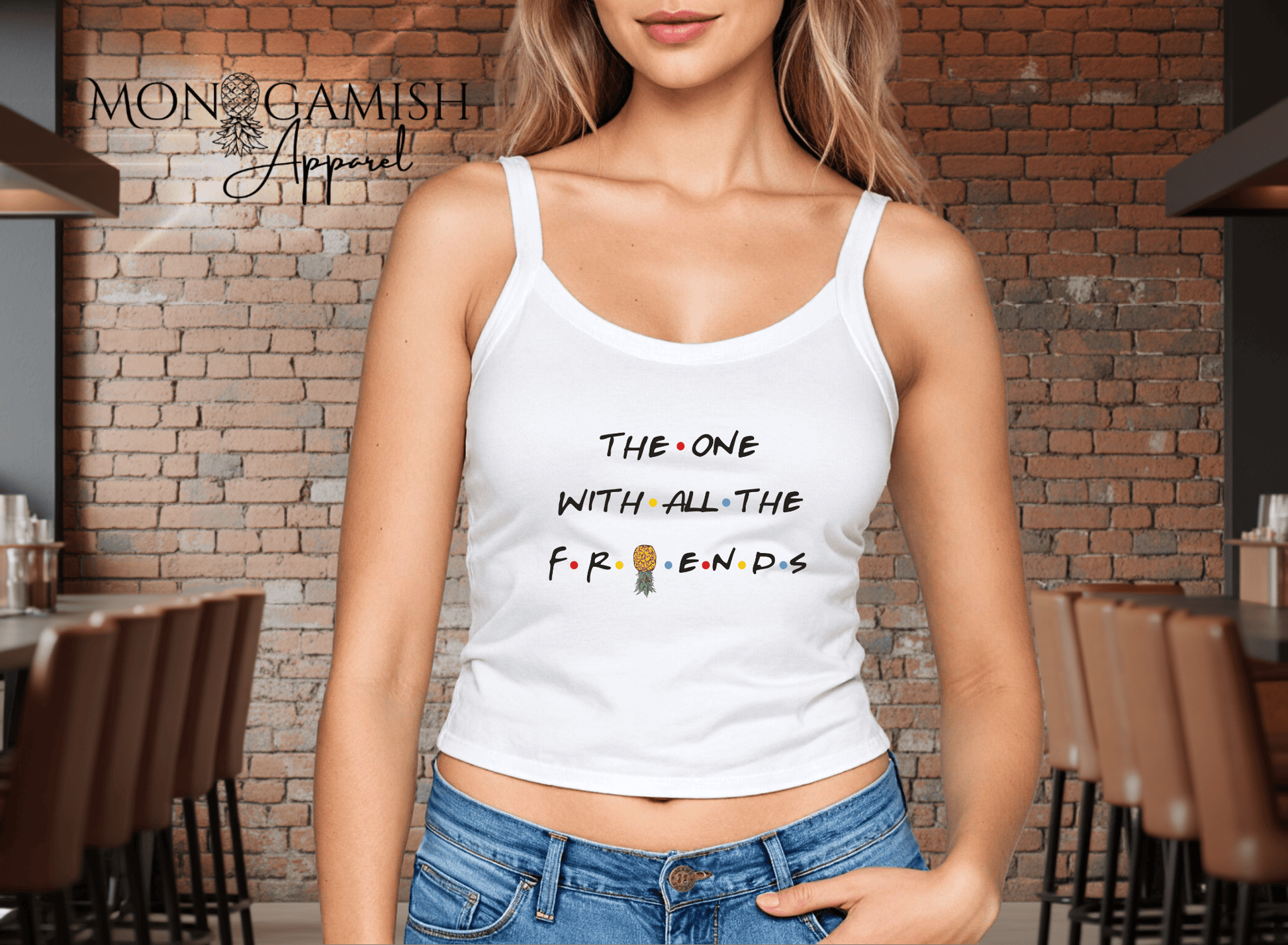 This playful tee reimagines a classic pop culture style with a lifestyle twist: βThe One With All the Friends,β complete with colorful dots and a cheeky upside-down pineapple in place of the βI.β Perfect for insiders who appreciate clever signals and subtle humor, this design blends nostalgia with a wink toward adventurous friendships. Wear it to parties, vacations, or casual nights out and let everyone know your circle is more than just social.
