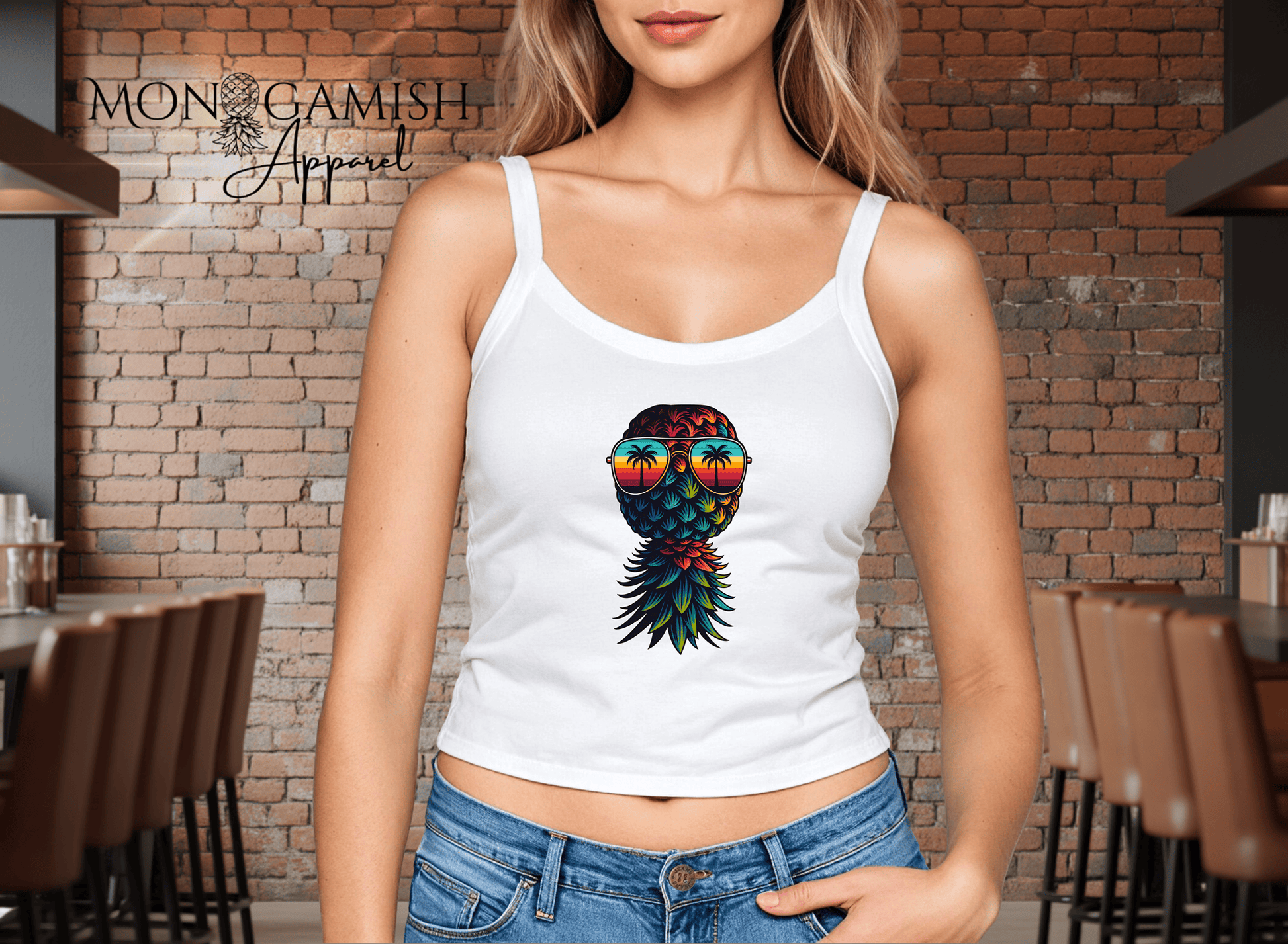 Turn up the heat with our “Swingin’ in Paradise” tee — a bold, tropical vibe for those who know how to party past the palm trees. This psychedelic pineapple rocks mirrored sunset shades with palms in each lens, giving off major “vacay-mode meets lifestyle-mode” energy. Perfect for pool parties, hotel takeovers, or just quietly signaling your not-so-vanilla side at brunch.